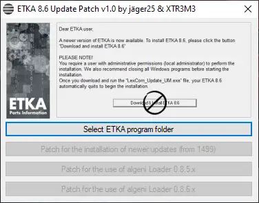 - avoids the messagebox for the update to ETKA 8.6 from update 1509 onwards -